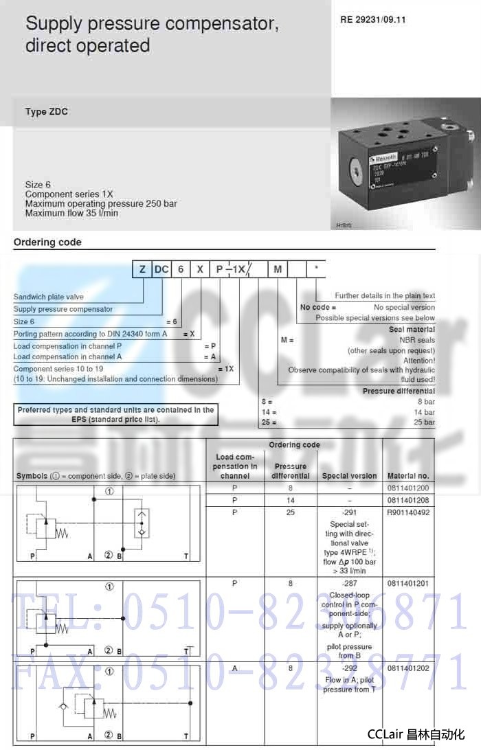 詳細(xì)信息 ZDC6XP-1X/8M,ZDC6XP-1X/14M,ZDC6XP-1X/25M,壓力補(bǔ)償器,力士樂REXROTH,德國力士樂