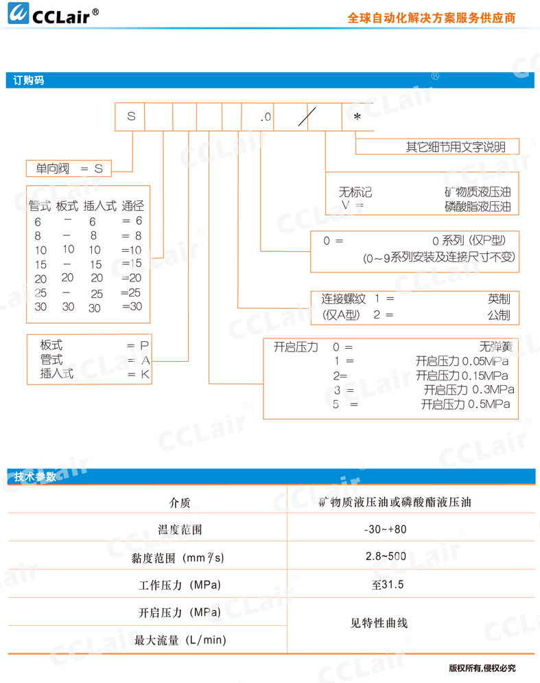 S6,S8,S10,S15,S20,S25,S30,S25K5,S30A1,S6A0,S25A5,S20P0,S6A2,單向閥