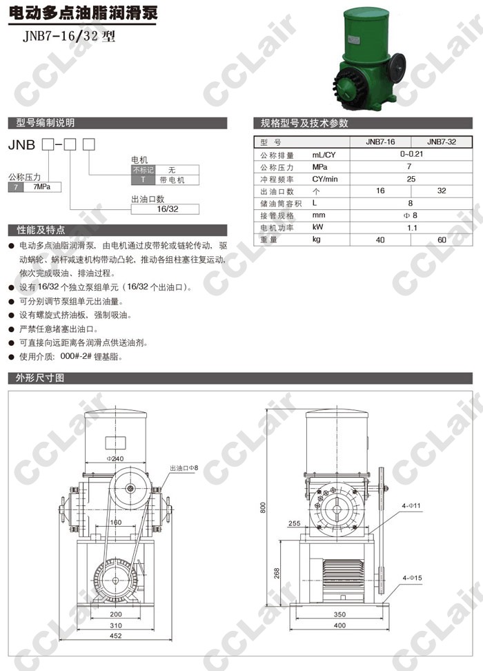 型號: JNB7-16/32,電動多點油脂潤滑泵