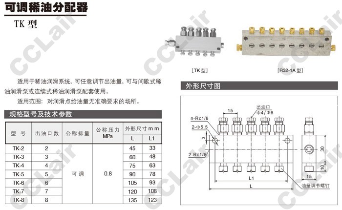 詳細信息 TK-2,TK-3,TK-4,TK-5,TK-6,TK-7,TK-8,可調(diào)稀油分配器