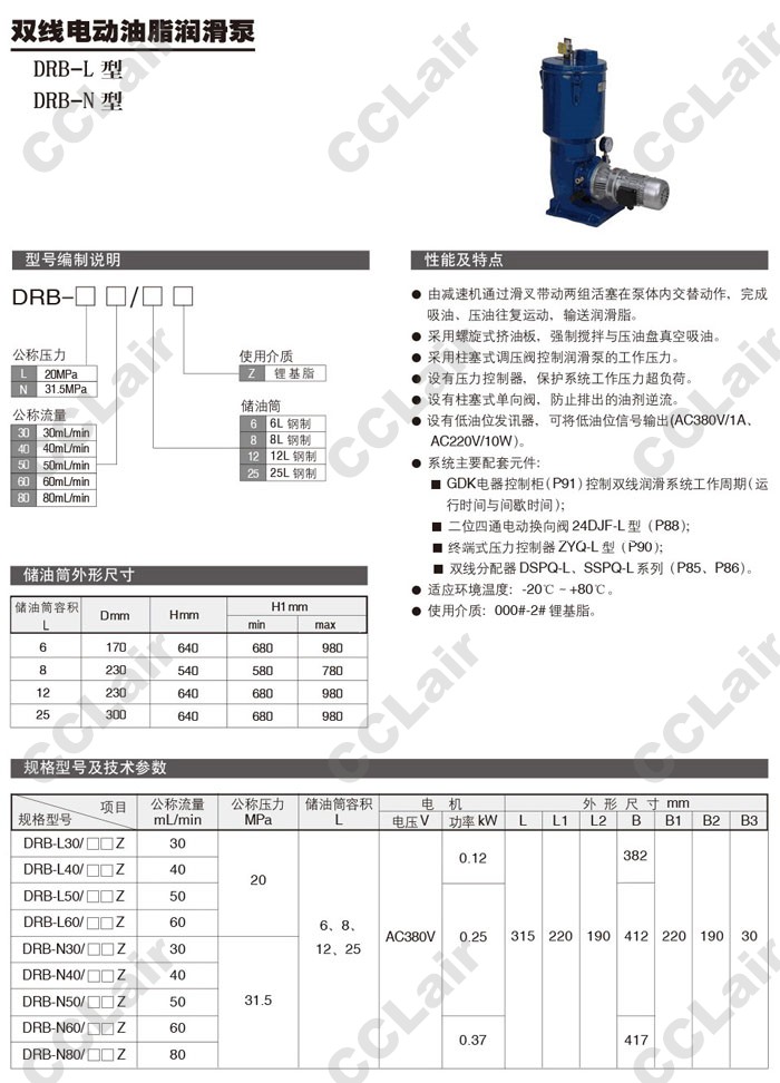 DRB-L30,DRB-L40,DRB-L50,DRB-L60,DRB-N30,DRB-N40,DRB-N50,DRB-N60,DRB-N80,雙線電動油脂潤滑泵