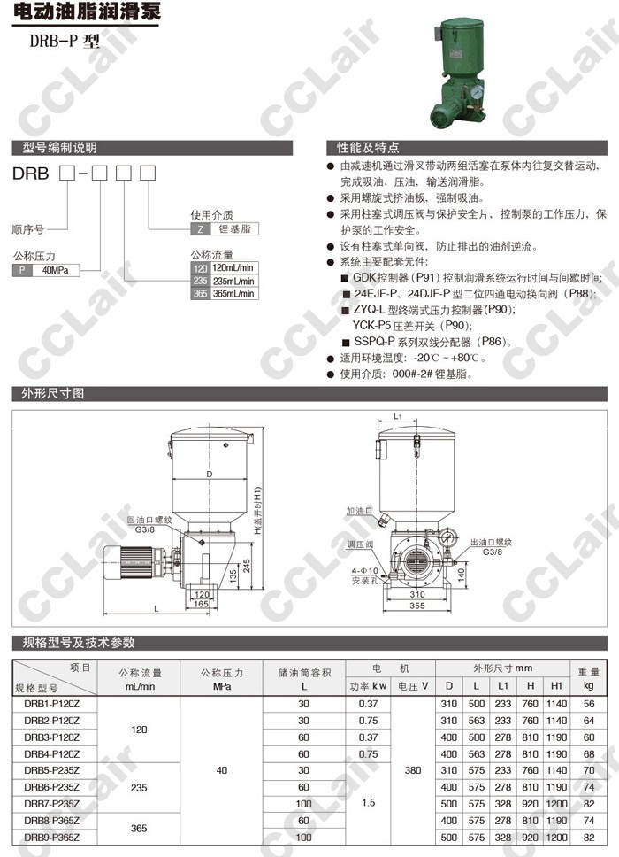 詳細(xì)信息 DRB1,DRB2,DRB3,DRB4,DRB5,DRB6,DRB7,DRB8,DRB9,DRB1-P120Z,DRB7-P235Z,電動(dòng)油脂潤(rùn)滑泵 DRB2-P120Z,DRB3-P120Z,DRB4-P120Z,CCLair DRB5-P235Z,DRB6-P235Z,DRB8-P365Z,DRB9-P365Z,