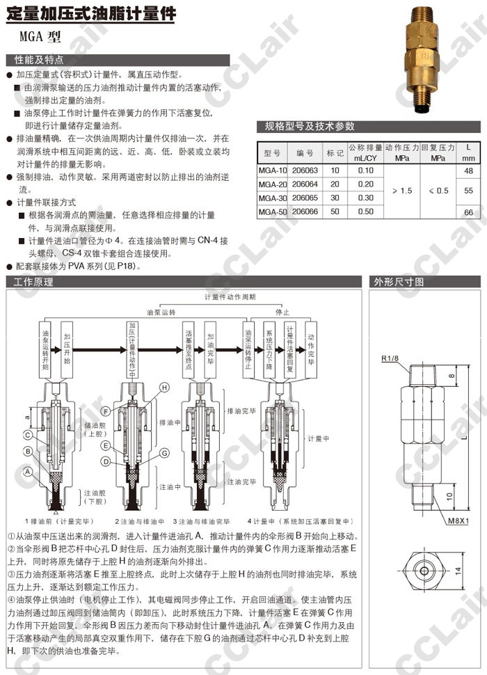 詳細信息 MGA-10,MGA-20,MGA-30,MGA-50,定量加壓式油脂計量件