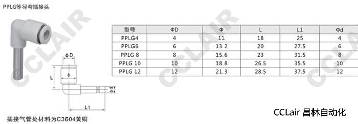 PPLG4,PPLG6,PPLG8,PPLG10,PPLG12,等徑彎插接頭