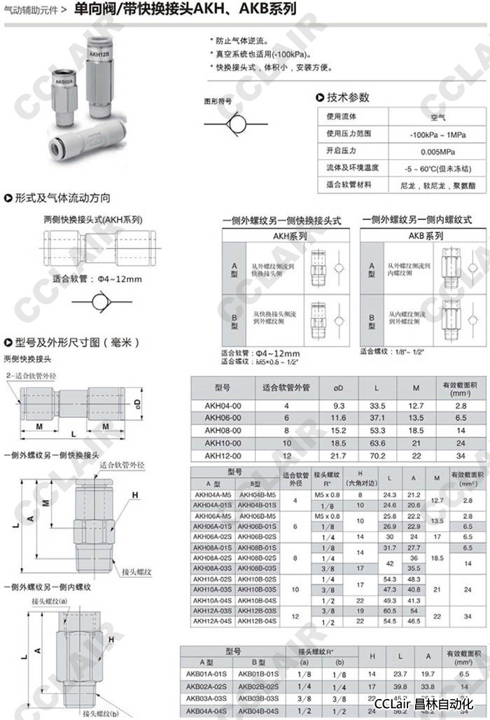 詳細信息 AKH04A,AKH06A,AKH08A,AKH10A,AKH12A,單向閥