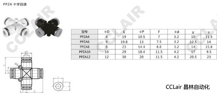 詳細(xì)信息 PPZA4,PPZA6,PPZA8,PPZA10,PPZA12,十字四通接頭