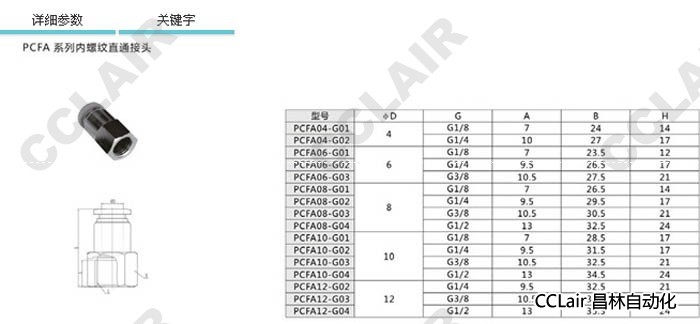 詳細(xì)信息 PCFA04,PCFA06,PCFA08,PCFA10,PCFA12,內(nèi)螺紋直通接頭