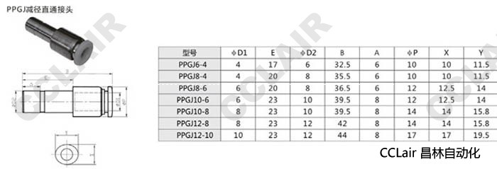 PPGJ6-4,PPGJ8-4,PPGJ8-6,PPGJ10-6,PPGJ10-6,PPGJ10-8,PPGJ12-8,PPGJ12-10,減徑直通接頭