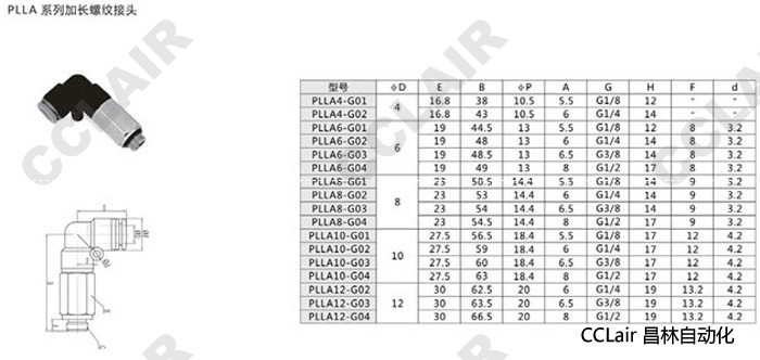 PLLA4,PLLA6,PLLA8,PLLA10,PLLA12,加長螺紋接頭