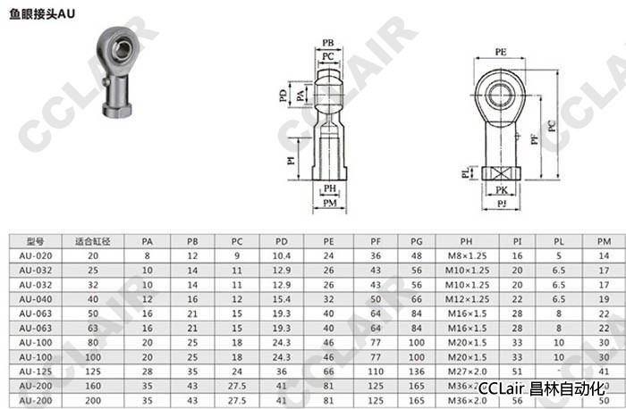 詳細(xì)信息 AU-020,AU-032,AU-040,AU-063,AU-100,AU-125,AU-200,魚眼接頭