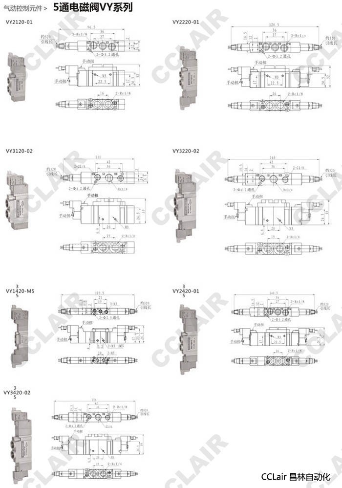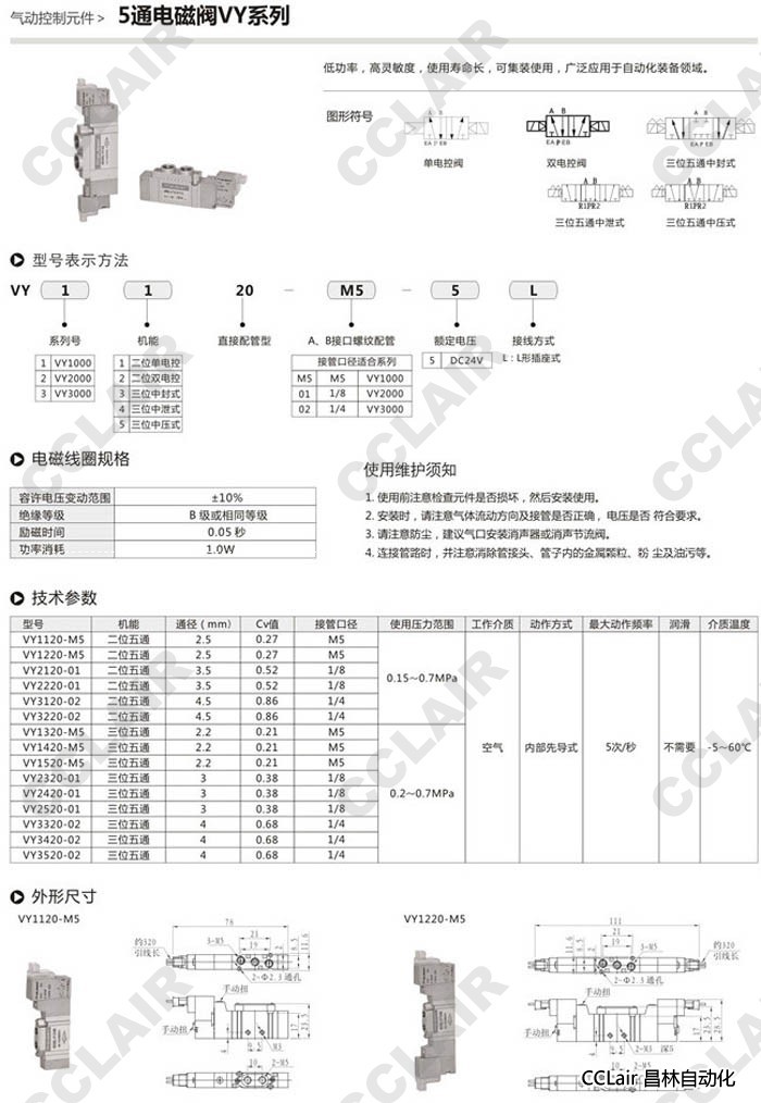 詳細(xì)信息 VY2320-M5,VY3320-M5,VY1420-M5,VY2420-M5,VY3420-M5,VY1520-M5,5通電磁閥