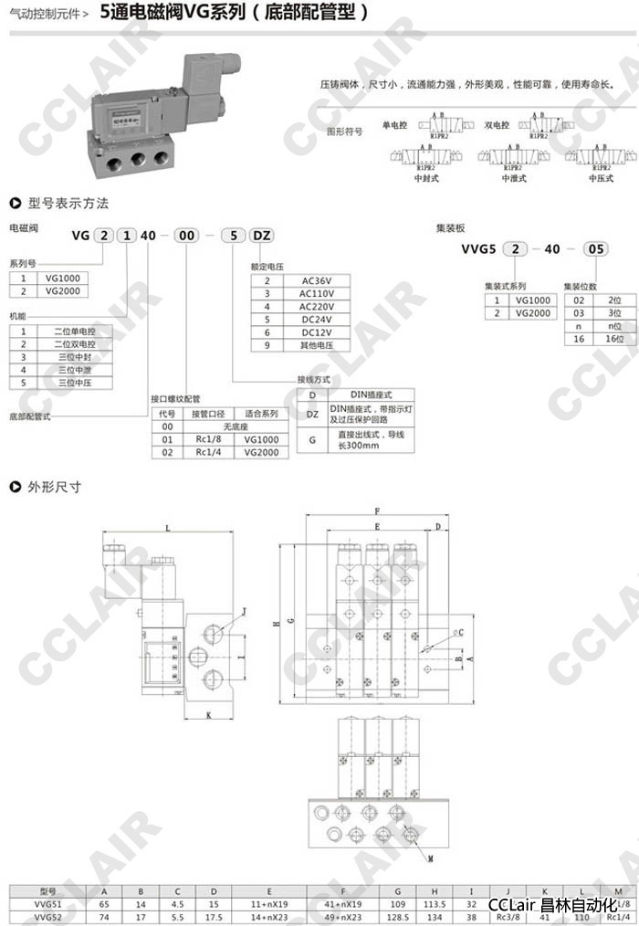 VG1140,VG2140,VG1240,VG2240,VG1340,VG2340,VG1440,VG2440,VG1540,VG2540,5通電磁閥