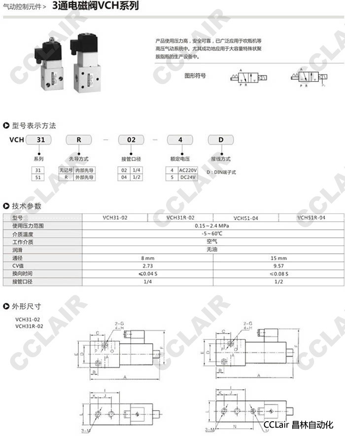 詳細(xì)信息 VCH31-02,VCH51-02,VCH31-04,VCH51-04,VCH31R-02,VCH51R-02,VCH31R-04,3通電磁閥