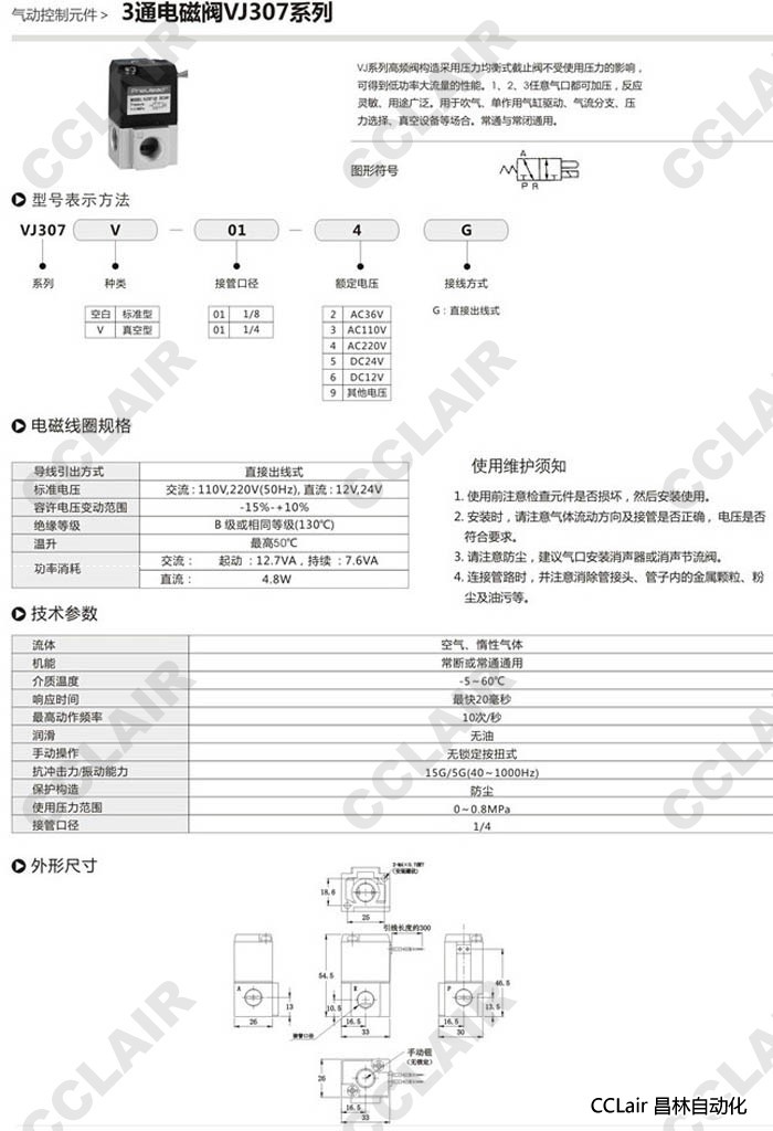 詳細(xì)信息 VJ307-01-2G,VJ307V-01-2G,VJ307-01-3G,VJ307V-01-3G,VJ307-01-4G,VJ307V-01-4G,3通電磁閥