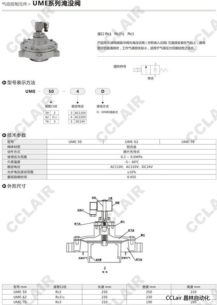 詳細信息 UME-50,UME-62,UME-76,淹沒閥
