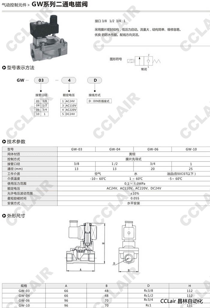詳細(xì)信息 GW-03,GW-04,GW-06,GW-10,二通電磁閥
