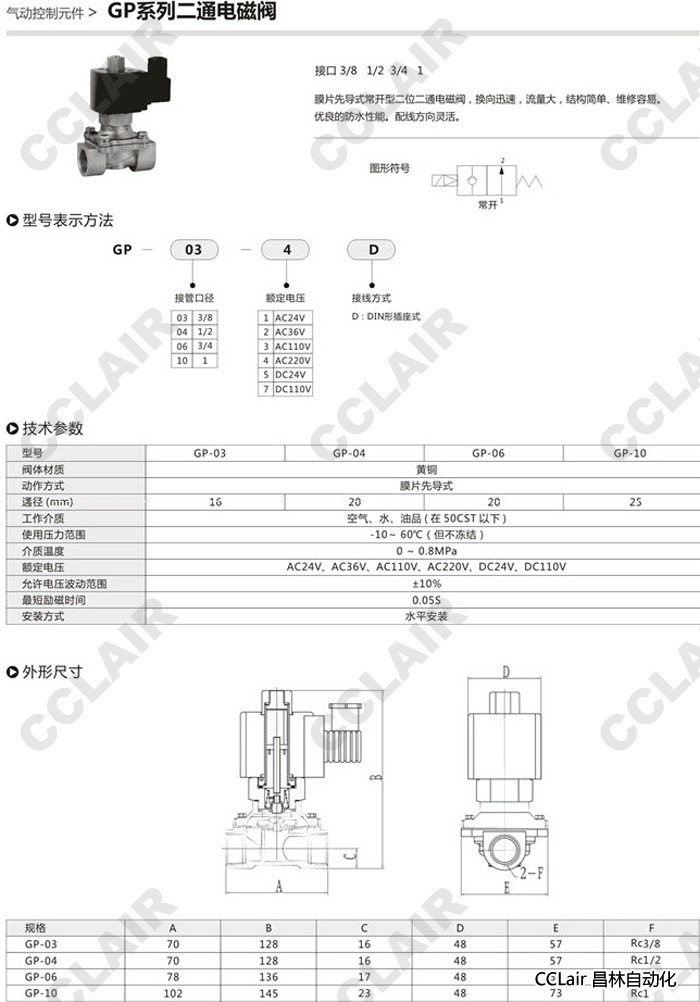 詳細信息 GP-03,GP-04,GP-06,GP-10,二通電磁閥
