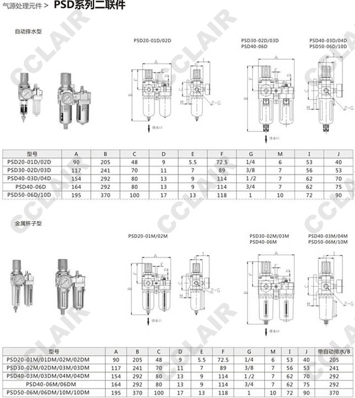 PSD50-MS,PSD50-01,PSD50-02,PSD50-03,PSD50-04,PSD50-06,PSD50-10,氣動(dòng)二聯(lián)件
