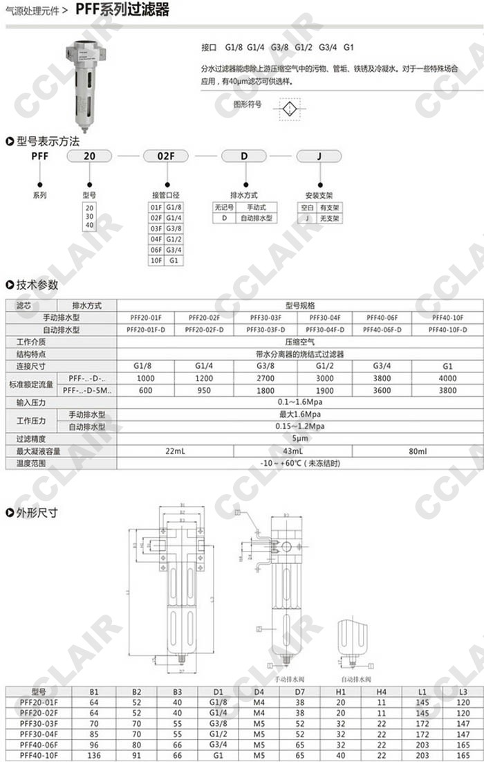 PFF40-01F,PFF40-02F,PFF40-03F,PFF40-04F,PFF40-06F,PFF40-10F,氣動過濾器