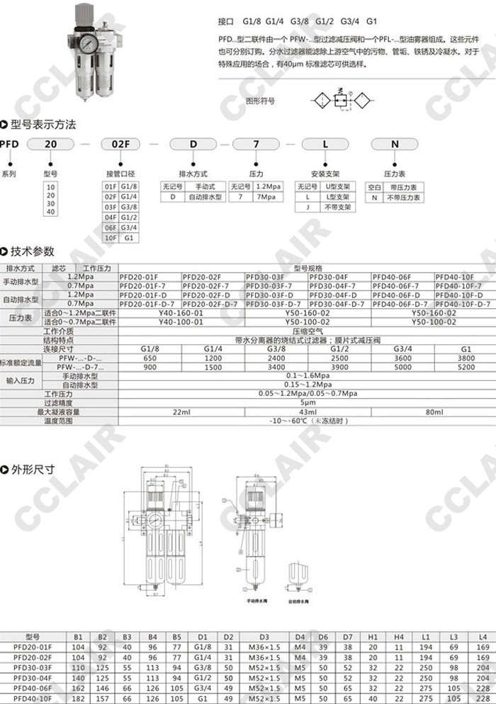 PFD40-01F,PFD40-02F,PFD40-03F,PFD40-04F,PFD40-06F,PFD40-10F,氣動二聯件