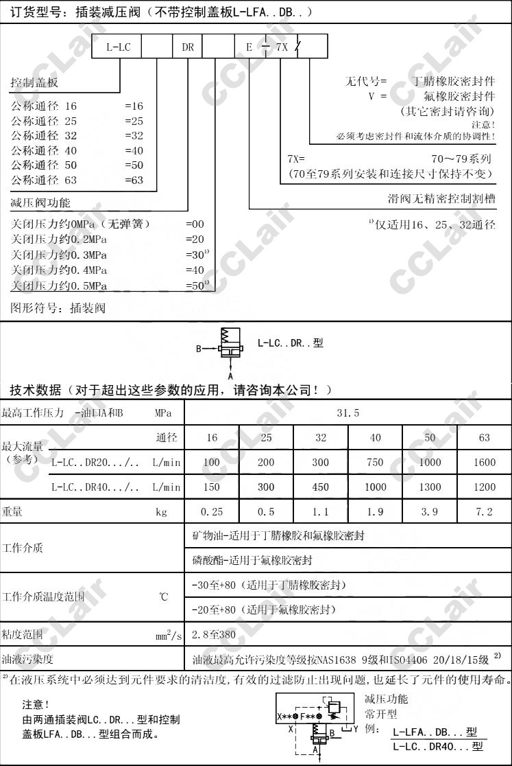 L-LC16DR00E-7X,L-LC25DR20E-7X,L-LC32DR30E-7X,L-LC40DR40E-7X,L-LC50DR00E-7X,L-LC63DR20E-7X,插裝減壓閥