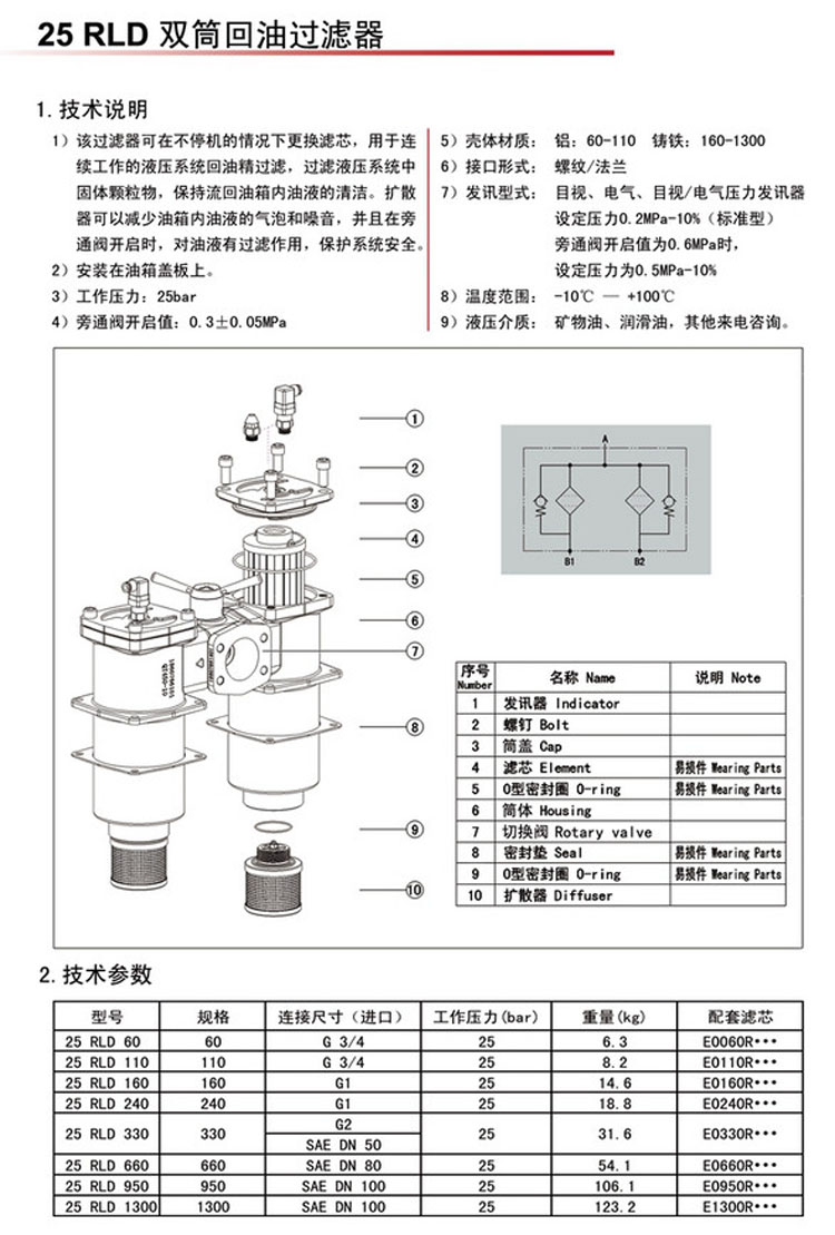 25RLD30,25RLD60,25RLD110,25RLD160,25RLD240,25RLD330,25RLD660,25RLD950,25RLD1300,25RLD1300KN3FAB20PD,雙筒回油過濾器