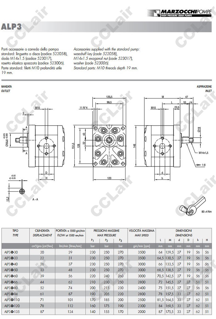 ALP3-D,ALP3-D-30,ALP3-D-33,ALP3-D-40,ALP3-D-50,ALP3-D-60,ALP3-D-66,ALP3-D-80,MARZOCCHI齒輪油泵