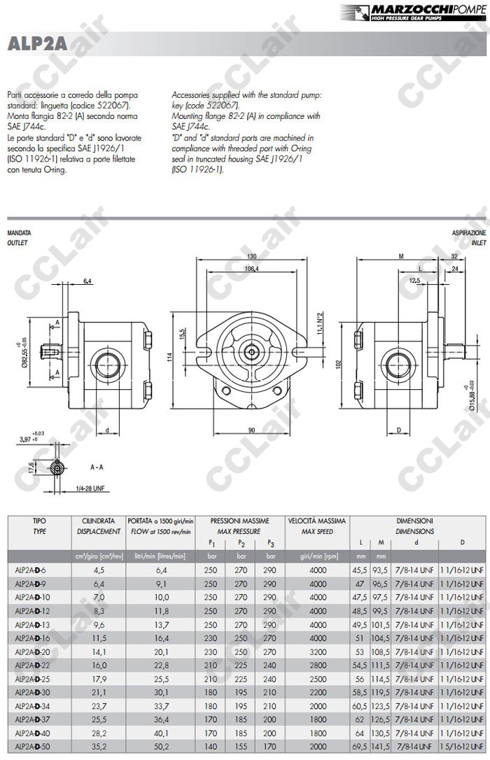 ALP2A-D,ALP2A-D-6,ALP2A-D-9,ALP2A-D-10,ALP2A-D-12,ALP2A-D-13,ALP2A-D-16,MARZOCCHI齒輪油泵