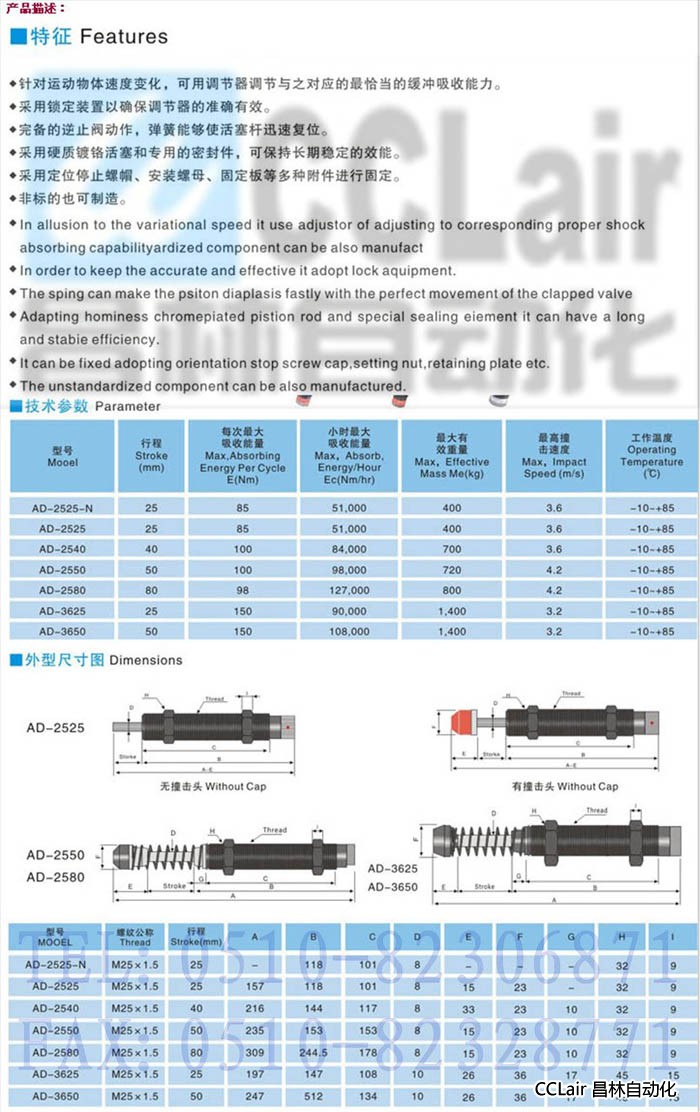 詳細(xì)信息 AD-2525-N,AD-2525,AD-2540,AD-2550,AD-2580,AD-3625,AD-3650,油壓緩沖器