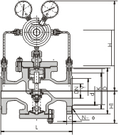 YK43XF氣體減壓閥連接尺寸: 公稱通徑DN 外 形 尺 寸 L H Hl 1.6/2.5MPa 4.0MPa 15 160 180 290 90 20 160 180 300 98 25 180 200 300 110 32 200 220 300 110 40 220 240 320 125 50 250 270 320 125 65 280 300 325 130 80 310 330 365 160 100 350 380 365 170 125 400 450 475 200 150 450 500 475 210 200 500 550 515 240 250 650 560 290 300 800 705 335 350 850 745 375 400 900 780 405 450 900 730 455 500 950 835 465