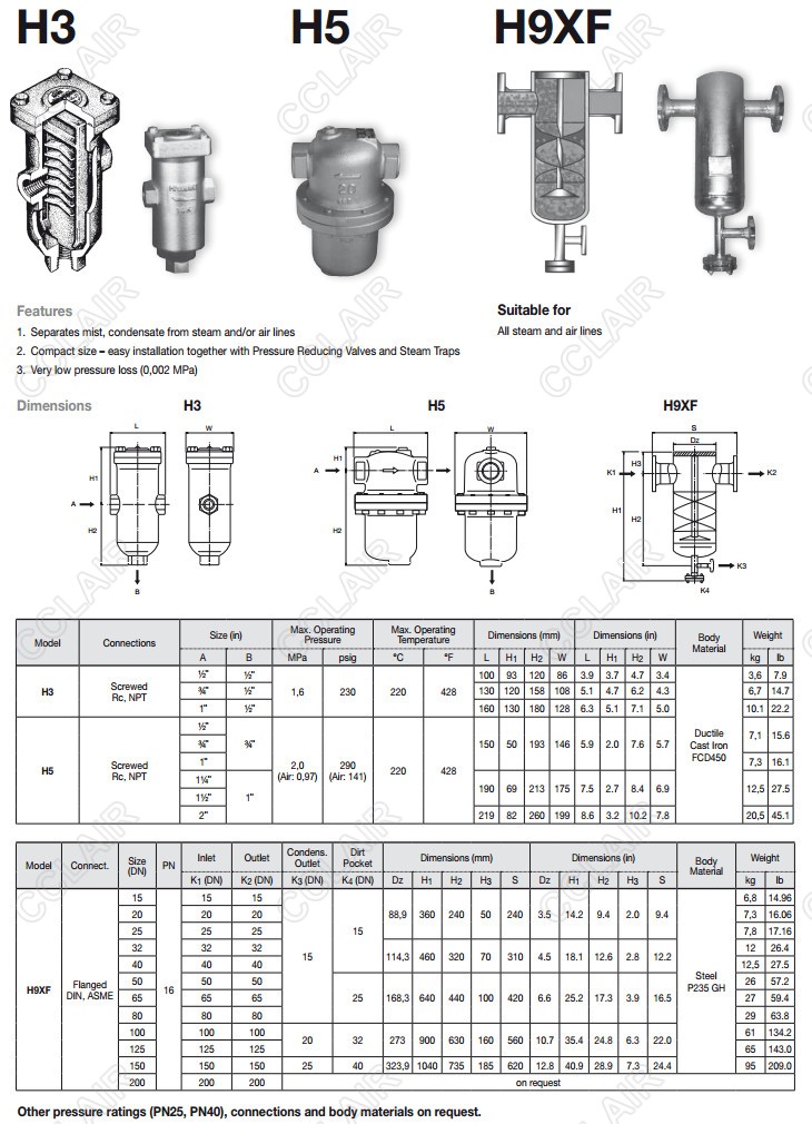 詳細(xì)信息 H3,H5,H9XF,miyawaki汽水分離器