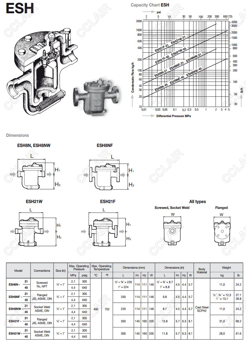 ESH8N-21,ESH8N-45,ESH8NF-21,ESH8NF-45,ESH8NW-21,ESH8NW-45,ESH21F-21,miyawaki倒吊桶式蒸汽疏水閥