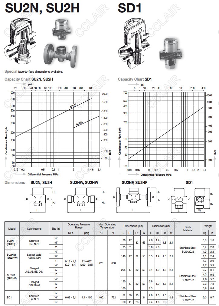 詳細信息 SU2N,SU2NW,SU2NF,SU2H,SU2HW,SU2HF,SD1,miyawaki熱動力式蒸汽疏水閥