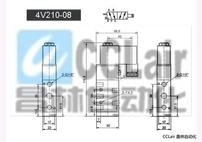 進(jìn)氣=出氣=G1/4" 排氣=G1/8″ |