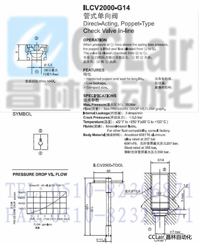 產(chǎn)品: 瀏覽次數(shù):754ILCV2000-G14,管式單向閥
