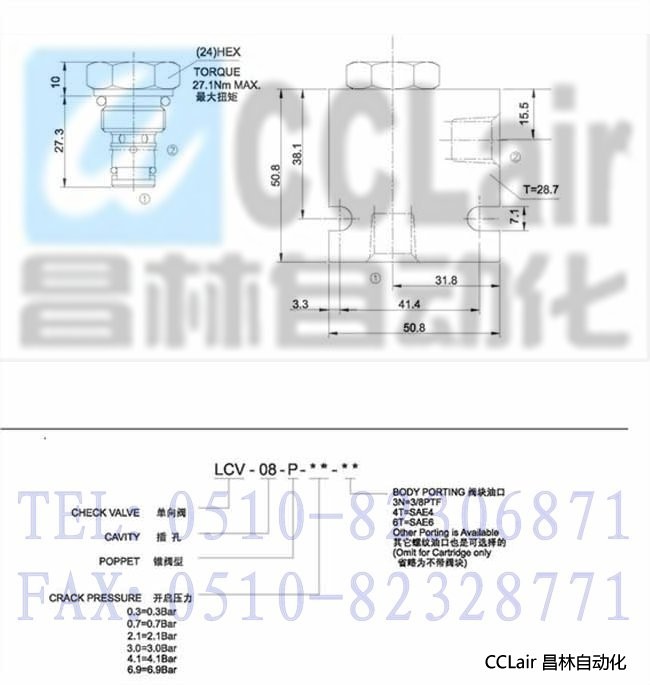 LCV-08-P-3.0,LCV-08-P-4.1,LCV-08-P-6.9,錐閥型單向閥,