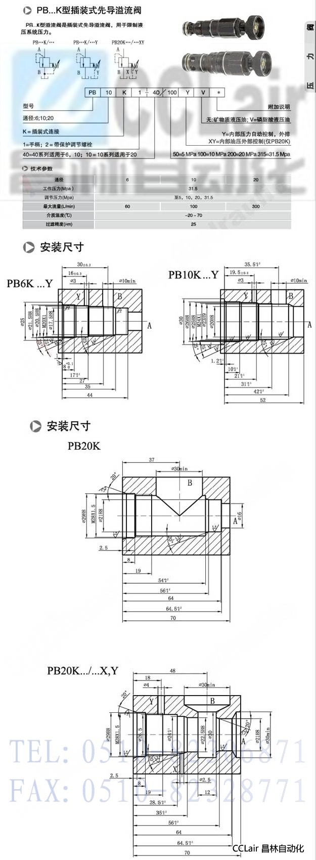 PB6K,PB10K,PB20K,插裝式先導(dǎo)溢流閥