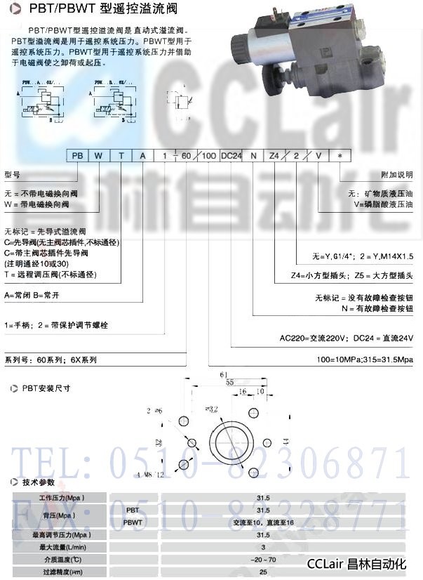 詳細(xì)信息 PBTA,PBWTA,PBA,PBWA,PBCA,PBWCA,遙控溢流閥