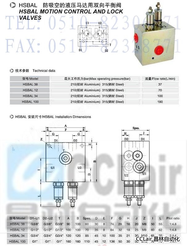 HSBAL 38,HSBAL 12,HSBAL 34,HSBAL 100,防吸空的液壓馬達用雙向平衡閥