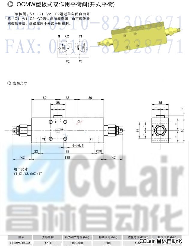 OCMW-1/4-41,板式雙作用平衡閥(開式平衡)