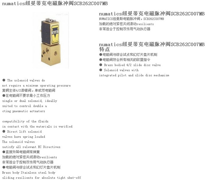 產(chǎn)品: 瀏覽次數(shù):771SCB262C007MB,numatics電磁脈沖閥