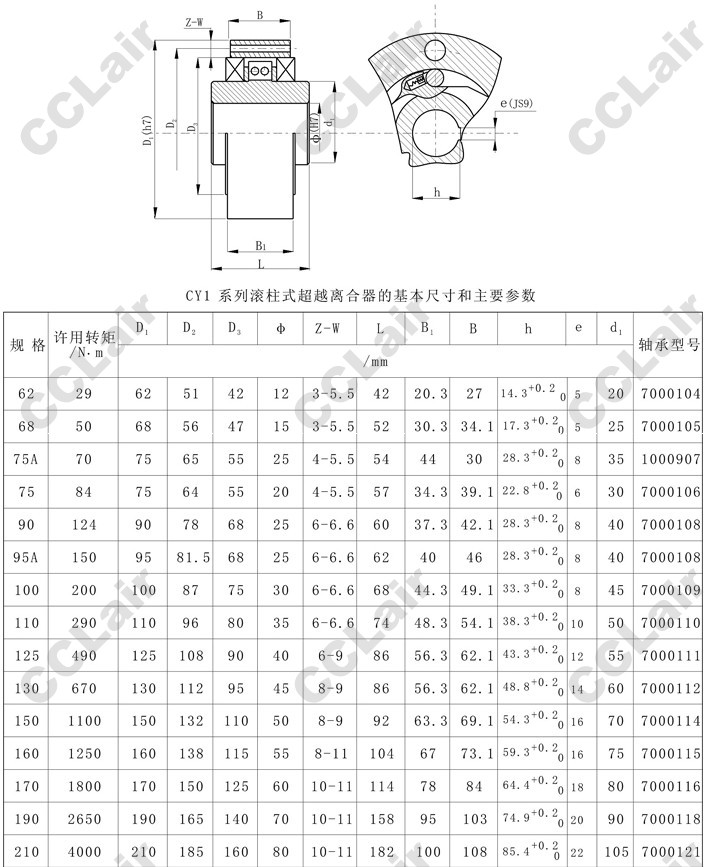 CY1-62,CY1-68,CY1-75A,CY1-75,CY1-90,CY1-95A,CY1-100,CY1-110B,CY1-130B,CY1-150B,滾柱式超越離合器