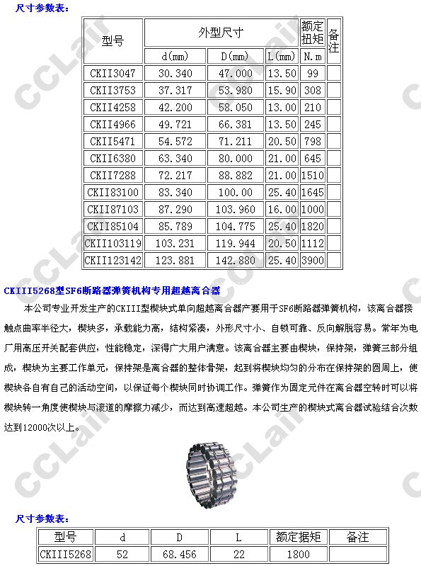 CKII3047,CKII3753,CKII4258,CKII5471,CKII6380,CKII7288,CKII83100,CKII871003,CKIII5268單向離合器
