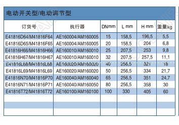 詳細信息 E41816D64,M41816F65,M41816H66,M41816L69,M41816P70,M41816T72,418型電動開關(guān)/電動調(diào)節(jié)球閥OMAL