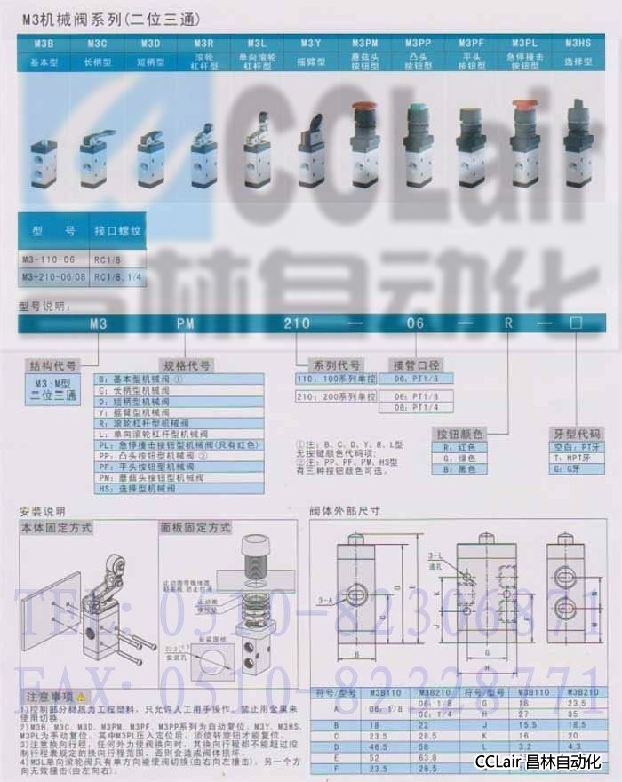詳細信息 M3L210-08,M3PL210-08,M3PP210-08,M3PF210-08,M3PM210-08,二位三通機械閥