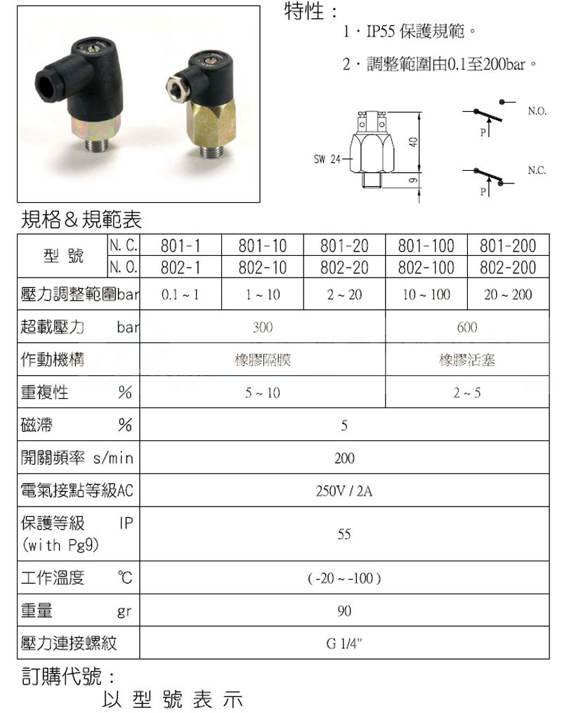 801-1,801-10,801-20,802-100,802-200,panix壓力開關