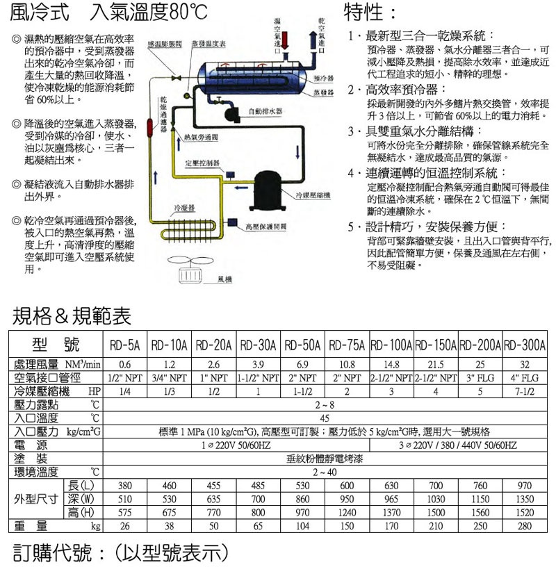 RD-5A,RD-10A,RD-20A,RD-30A,RD-50A,RD-75A,RD-100A,panix風(fēng)冷式標(biāo)準(zhǔn)型冷干機(jī)