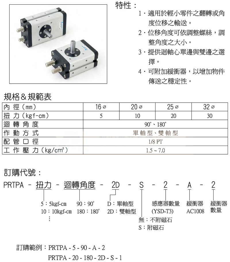 詳細(xì)信息 PRTPA-5-90,PRTPA-10-90,PRTPA-20-180,PRTPA-30-180,panix回轉(zhuǎn)氣缸