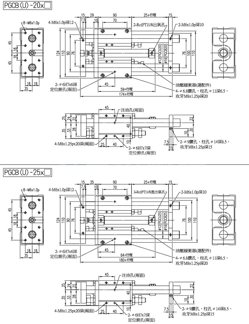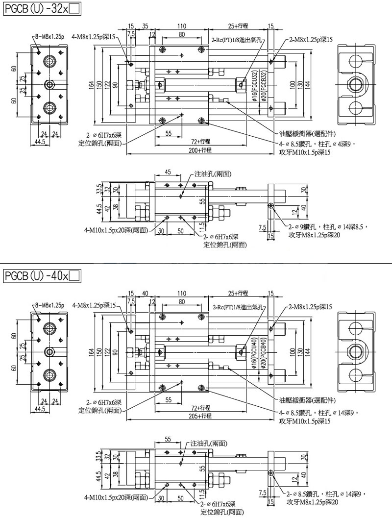 PTMB-20,PTMU-32,PGCB-20,PGCU-32,PTMB-40,PGCB-40,panix輕負(fù)荷導(dǎo)桿氣缸
