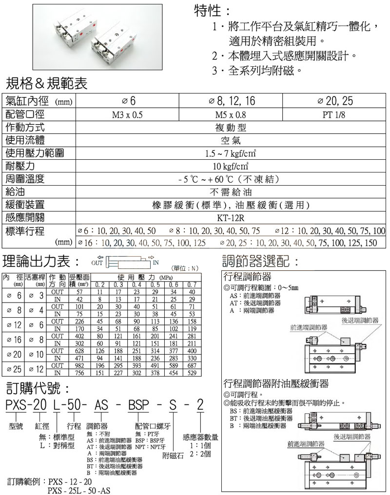 PXS-6,PXS-8,PXS-12,PXS-16,PXS-20,PXS-25,panix滑軌氣壓缸